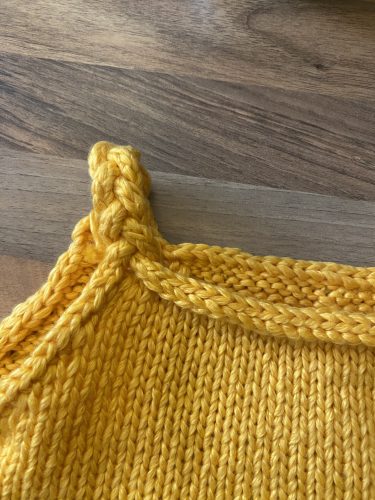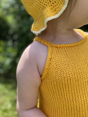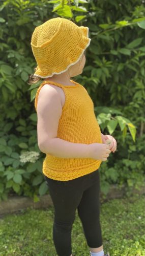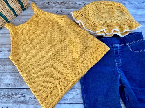 I knitted this tank with the soft and durable yarn from Lang Yarns Amira in the vibrant color “Sunshine”, I am not sure if that's really the name of that color, but it looks like sunshine.