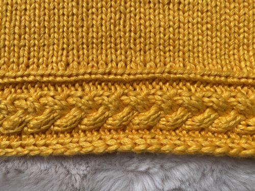 Little Belfalas is a really cute and fast to knit pattern that was designed by Melanie Rountree. This pattern is knitted bottom up, starting with this eye-catching cable detail. And for the finishing touches, these amazing I-Cord straps which are braided together. And you don't have to be worried that it might be complicated, because Melanie always explains everything very detailed and adds a lot of videos which guide you through every section.