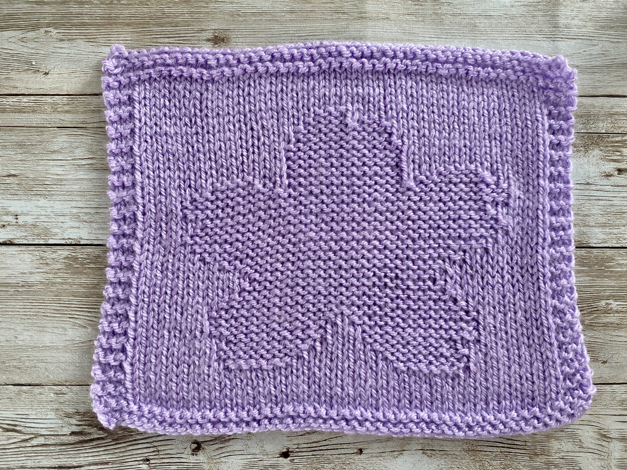 Gartner stitch is used to frame the motif; on the RS (right side) and WS (wrong side) all stitches are knit stitches.
