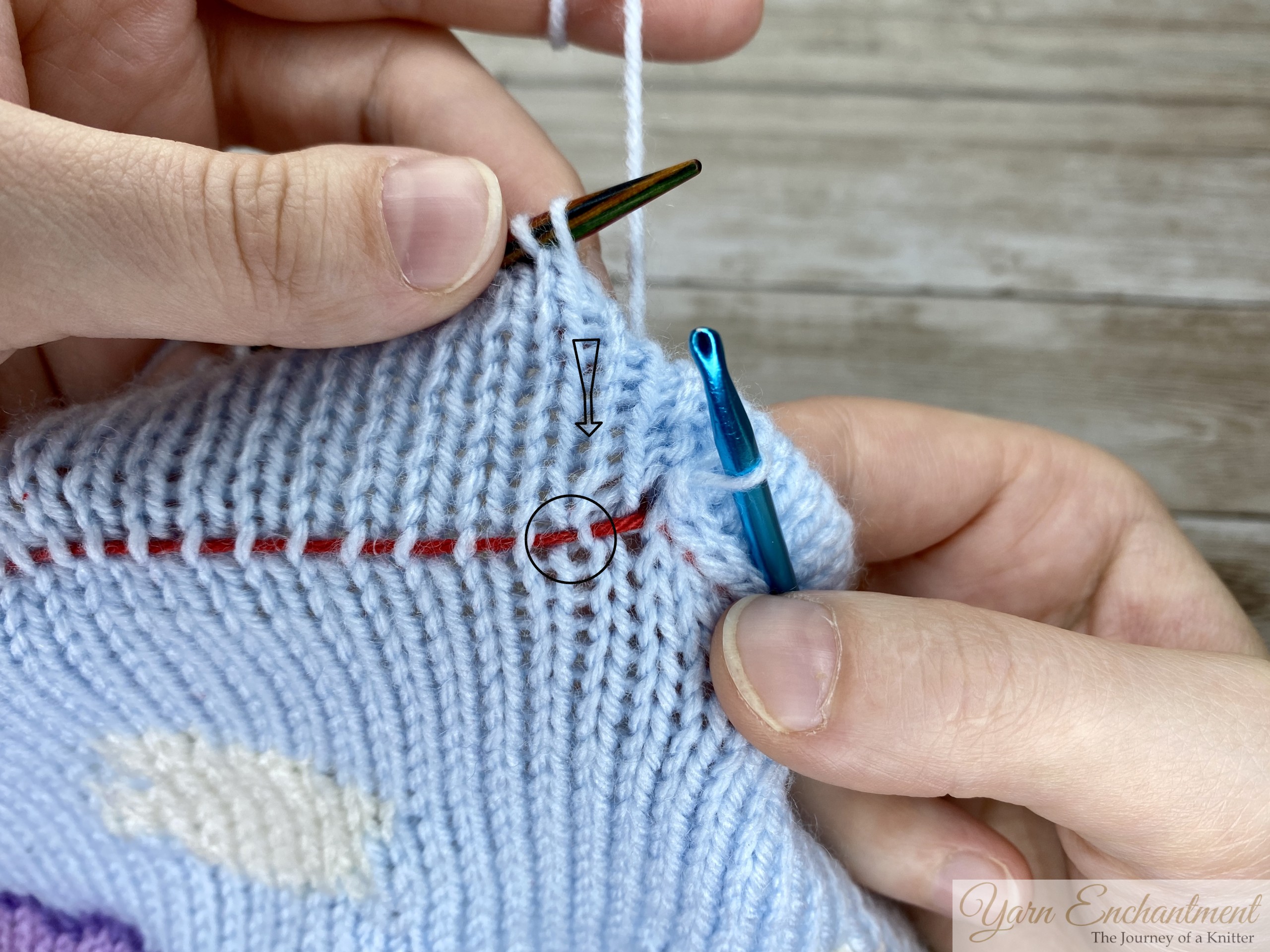 - Your knitted piece, prepared with a lifeline (this makes it easier to spot the row).