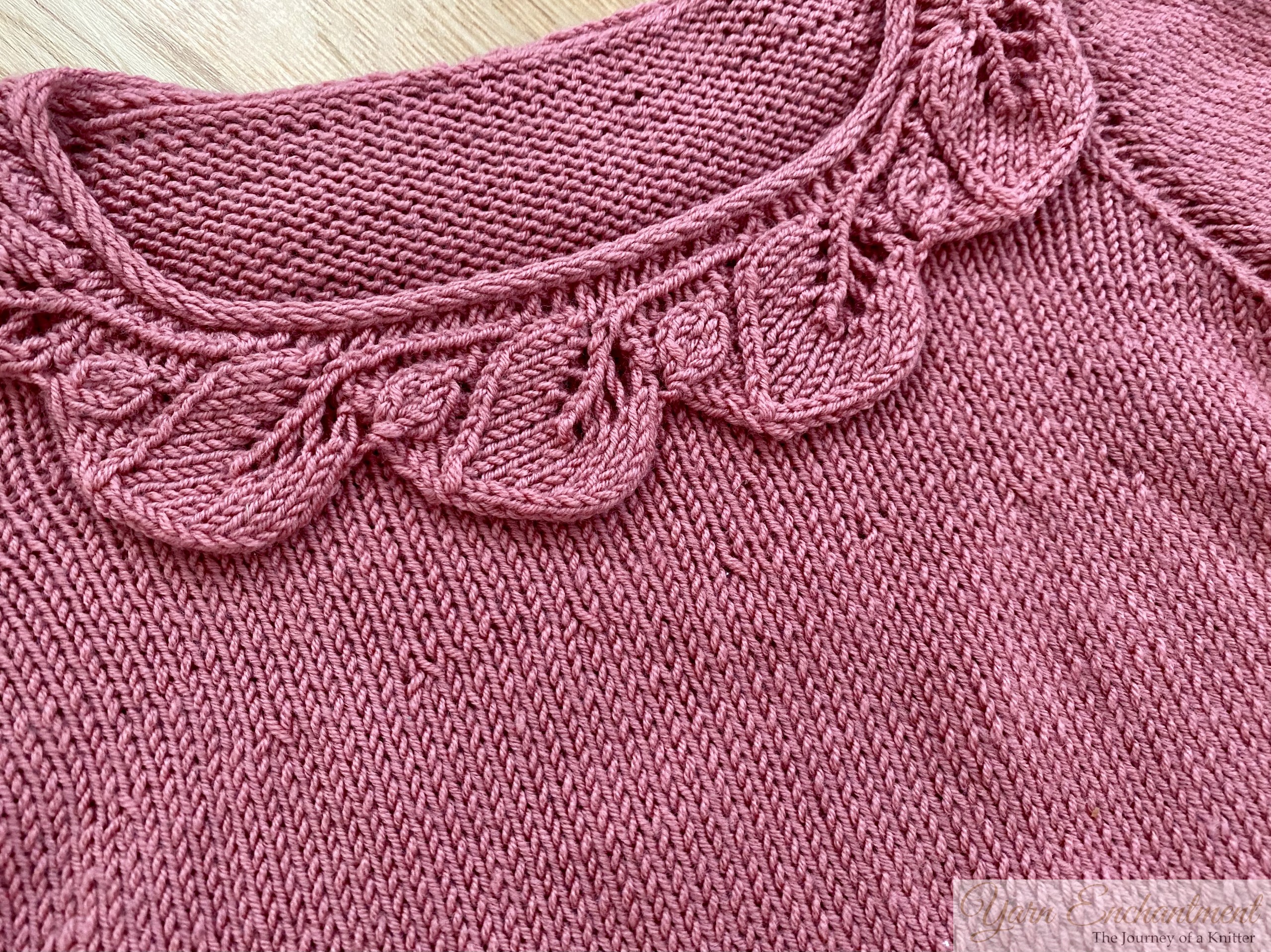 This is a great example of the use of decreases and increases in knitting. Along the leaf edges, you can see techniques such as SSK , M1L, and M1R increases, as well as k2tog, p2tog, KFB , and K1 S1 PSSO decreases. |