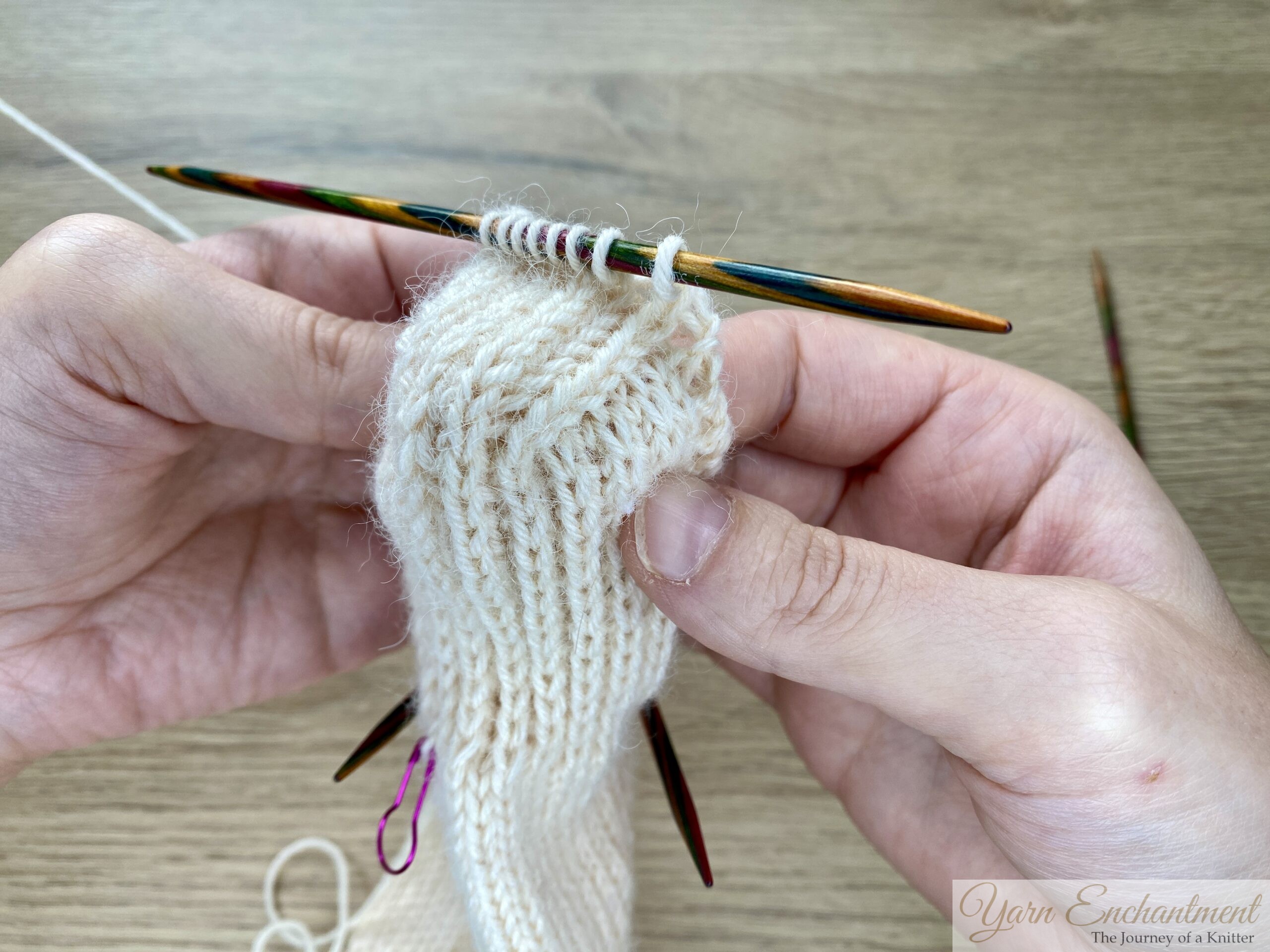 For now, take a moment to admire your work, the hardest part is behind you! Next time, we’ll pick up the gusset stitches. Until then, keep enjoying every stitch, and remember: each pair of socks you knit is a little gift of comfort and love, both to yourself and to those lucky enough to wear them.