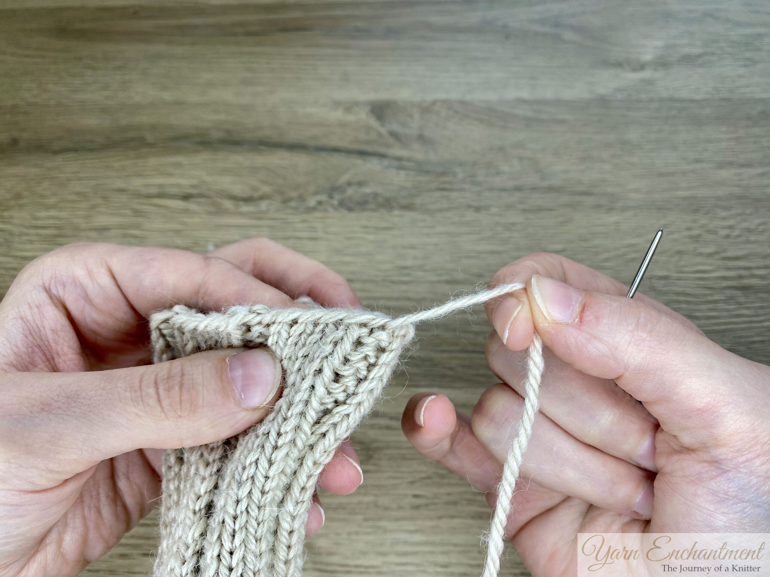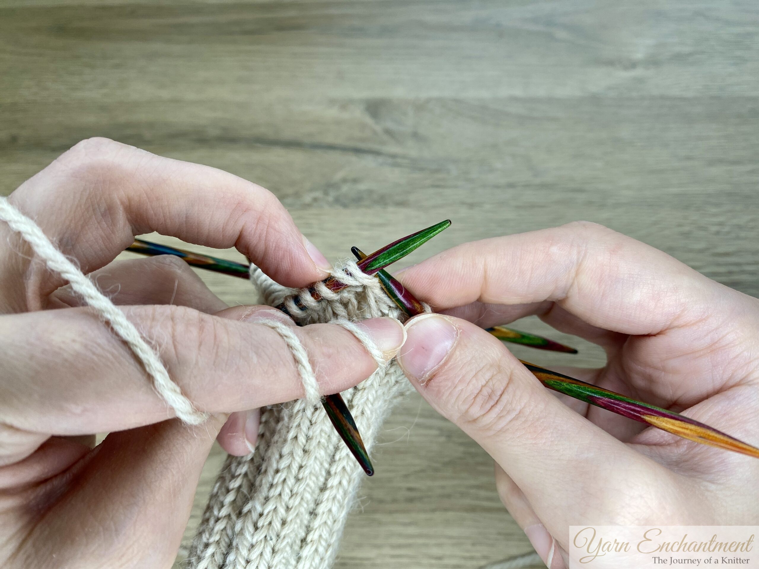 - Decrease round: [k1, k2tog, k1, p2tog] – repeat to end of round (you will have fewer stitches).